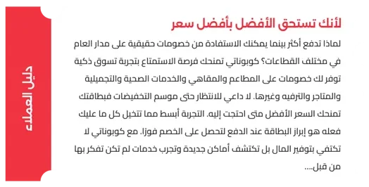 كوبوناتي بطاقة خصومات وبوابتك لعالم مليء بالمزايا والعروض الحصرية في مختلف القطاعات. بعد نجاحها في المملكة العربية السعودية لأكثر من خمس سنوات تنطلق الآن في سلطنة عُمان لتحدث تغييرًا حقيقيًا في تجربة التسوق والخدمات.